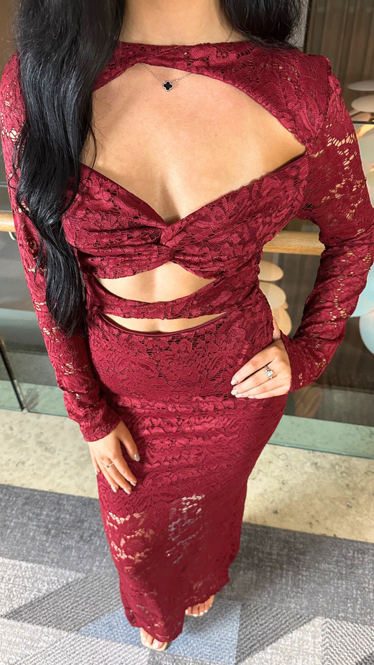 Aisha - Applique Long Sleeve Mini Dress Wine