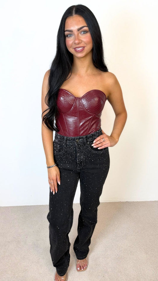 Millie - Brown Bronze Stud Detail Straight Leg Jeans