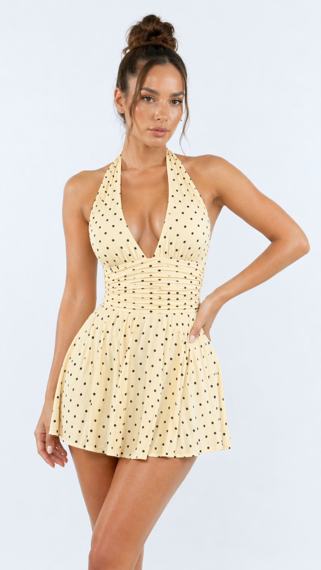 Daisy - Lemon Polka Dot Tie Back Mini Dress