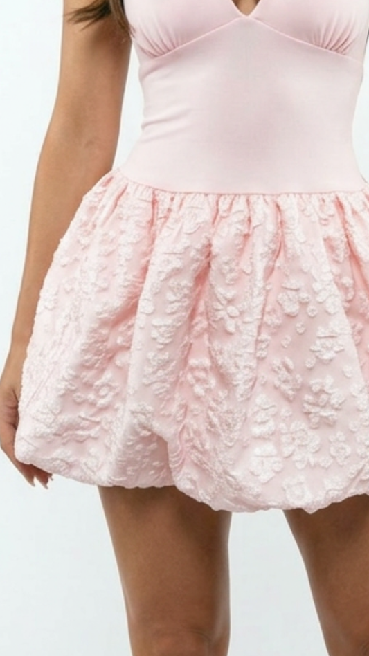 Monica - Halter Textured Skirt Mini Dress Pink