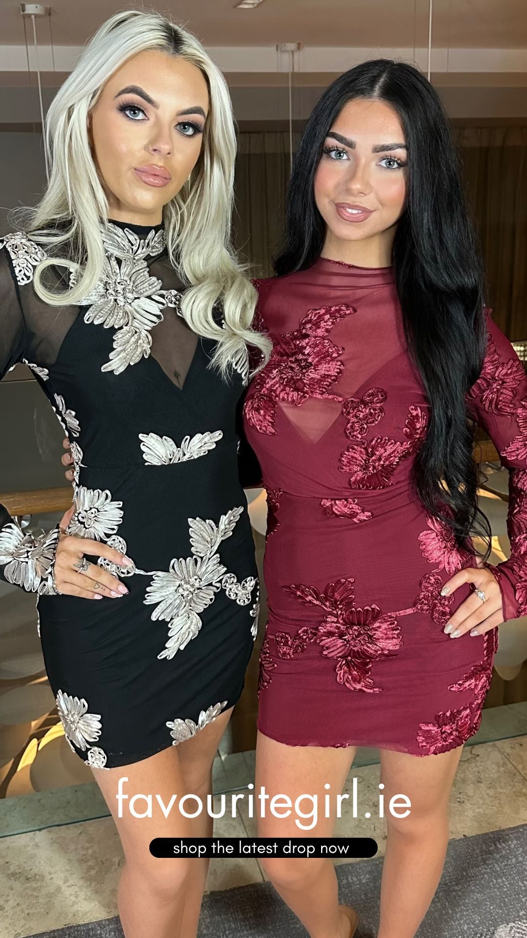 Aisha - Applique Long Sleeve Mini Dress Wine