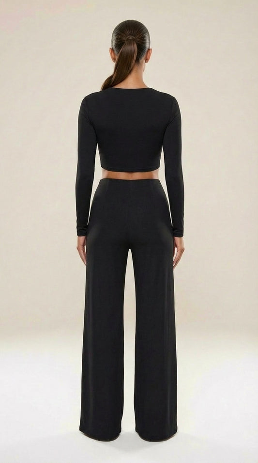 Megan - Slinky Crop & Trouser Co-Ord Black