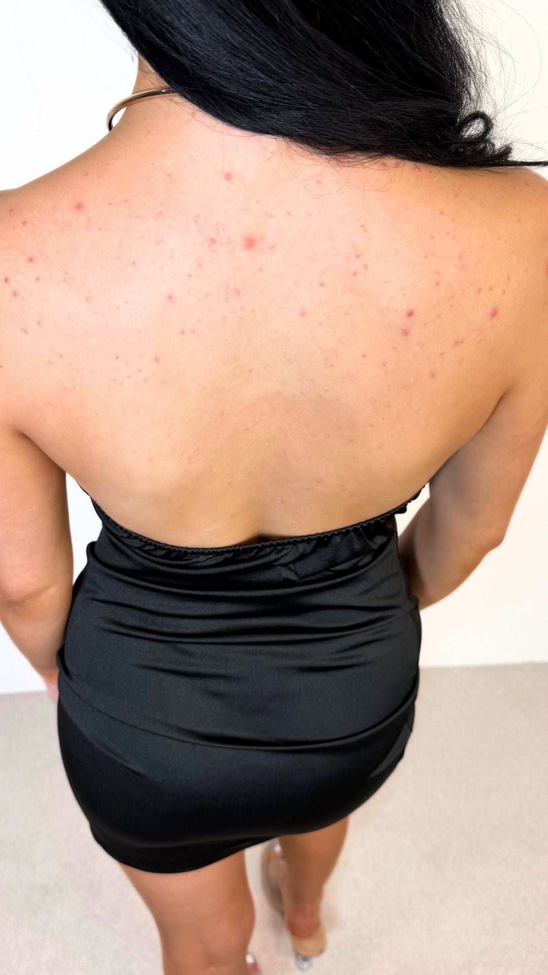 Meet Lottie – the statement mini designed to turn every head in the room. Crafted from a luxe, satin-finish stretch fabric, this dress drapes effortlessly across the body for a smooth, sculpted fit. The standout feature is the striking metal neckline, creating an elegant gathered front that falls into a soft cowl for a modern, high-end look.